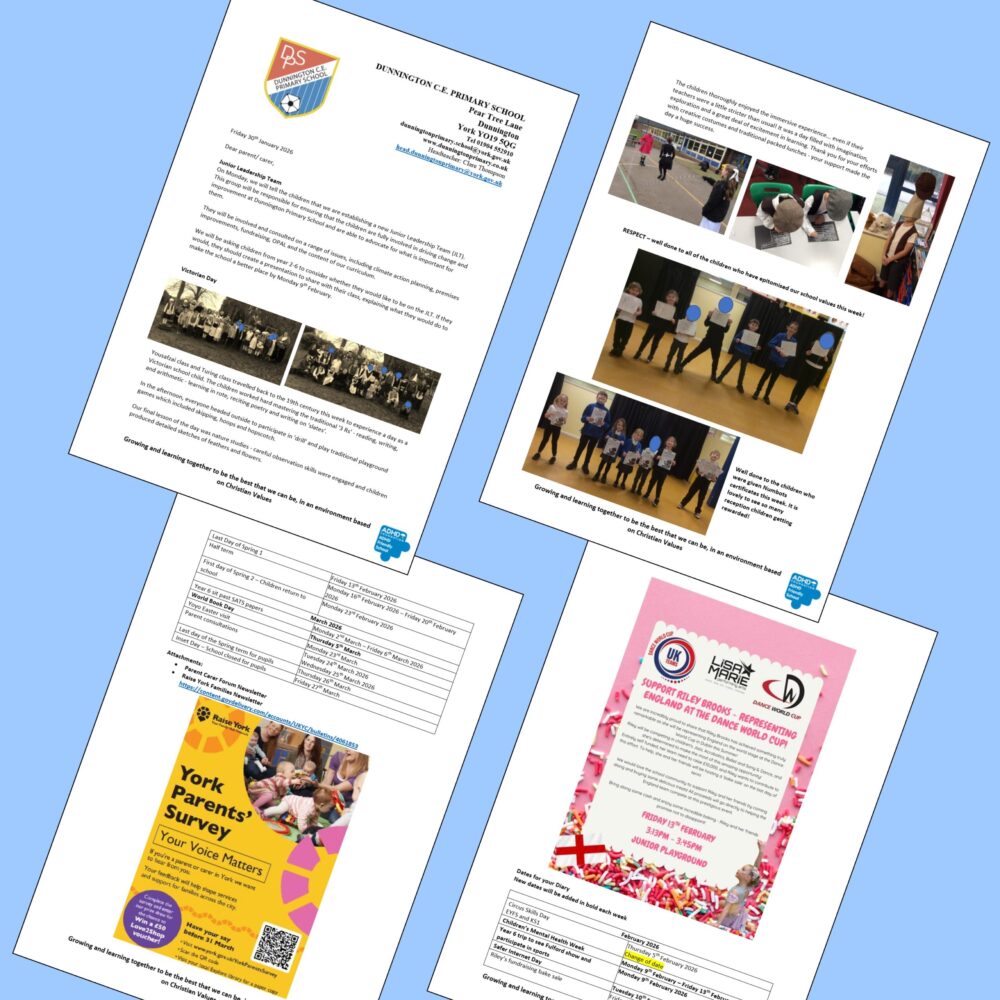1 Feb 2026 Newsletter & Diary Dates 30-01-26 by Kat Chandler | posted in: News, Newsletters | 0 Please find below this week’s newsletter from Dunnington Church of England Primary School. Click for a larger .pdf version Links/Attachments: Parent Carer Forum Newsletter Raise York Families Newsletter
