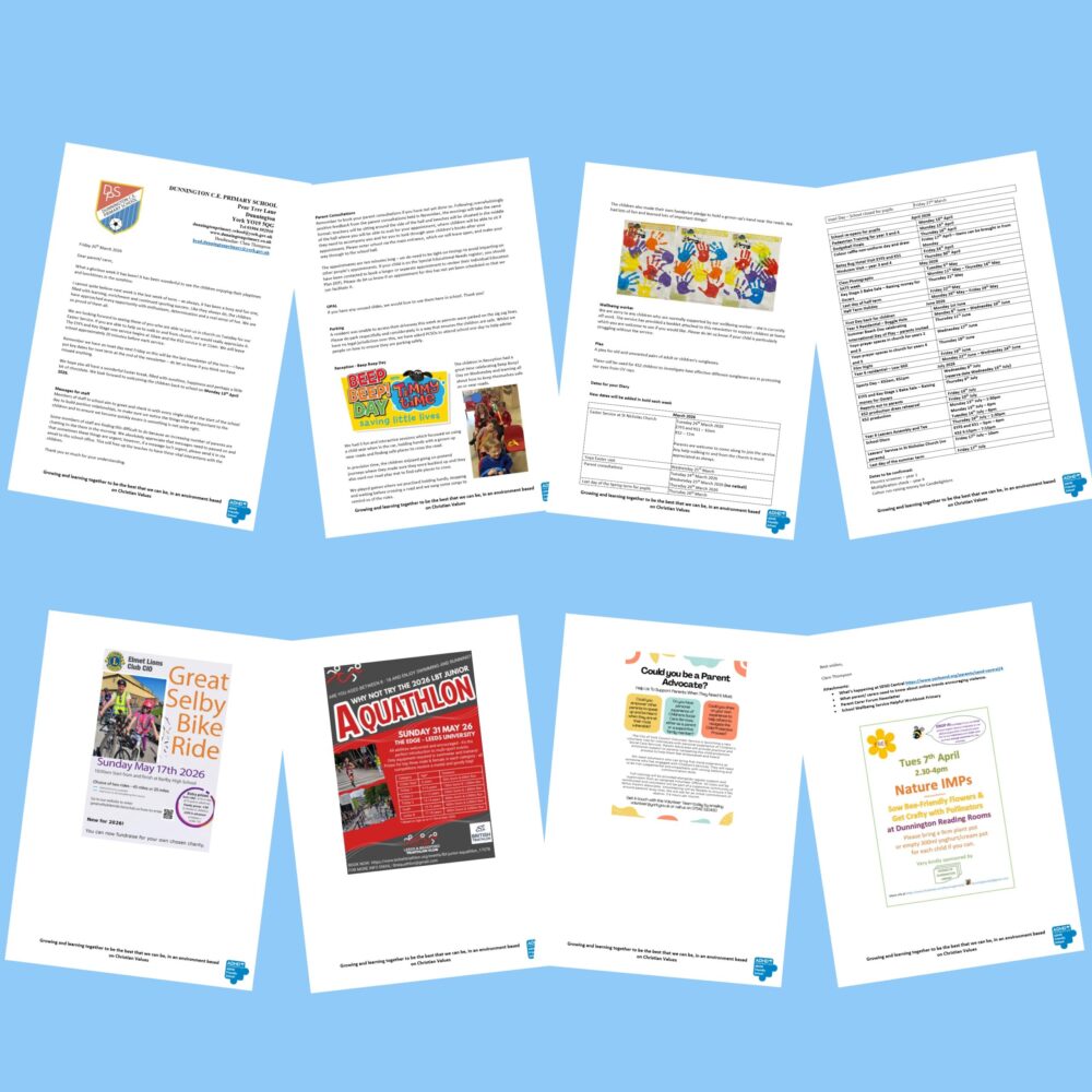 20 Mar 2026 Newsletter & Diary Dates 20-03-26 by Kat Chandler | posted in: News, Newsletters | 0 Please find below this week’s newsletter from Dunnington Church of England Primary School. Click for a larger .pdf version Links/Attachments: What’s happening at SEND Central What parent/carers need to know about online trends encouraging violence Parent Carer Forum Newsletter School Wellbeing Service Helpful Workbook Primary