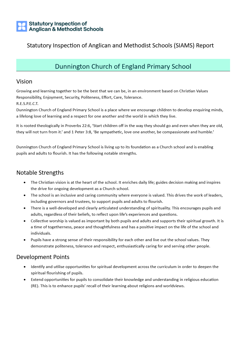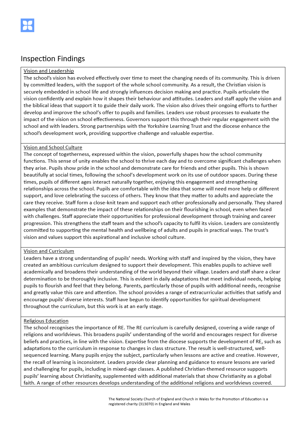 We are delighted to be able to share the finalised report following our latest SIAMS inspection, which took place in November 2025. We are really proud of the report: it is filled with lovely comments and observations that capture our school perfectly. The inspector identified so many strengths and agreed with the areas of development we had identified in our own self-evaluation.